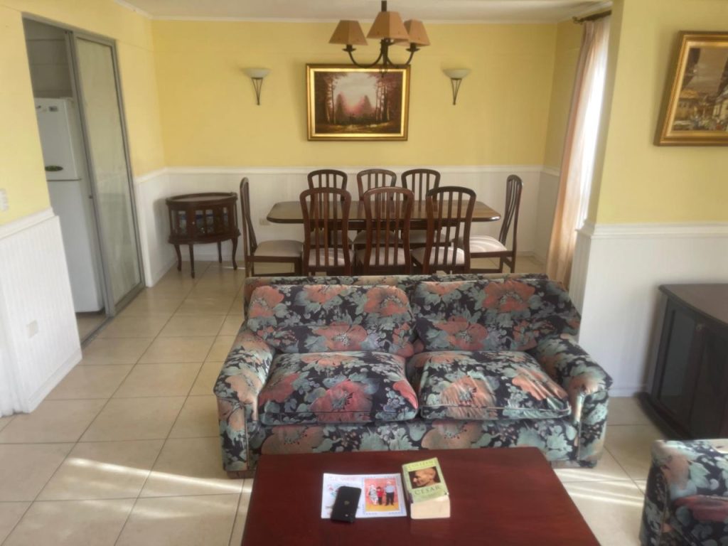 LIVING, COMEDOR, COCINA AMOBLADA, TRES DORMITORIOS, DOS BAÑOS, LAVANDERIA, TENDEDERO Y BODEGA.